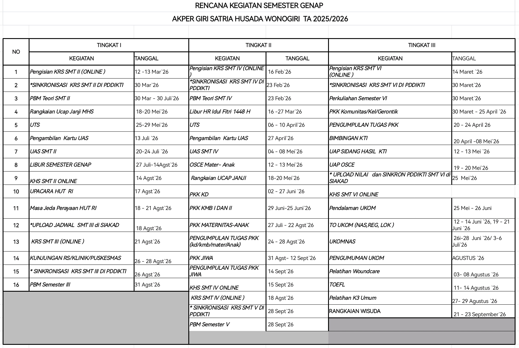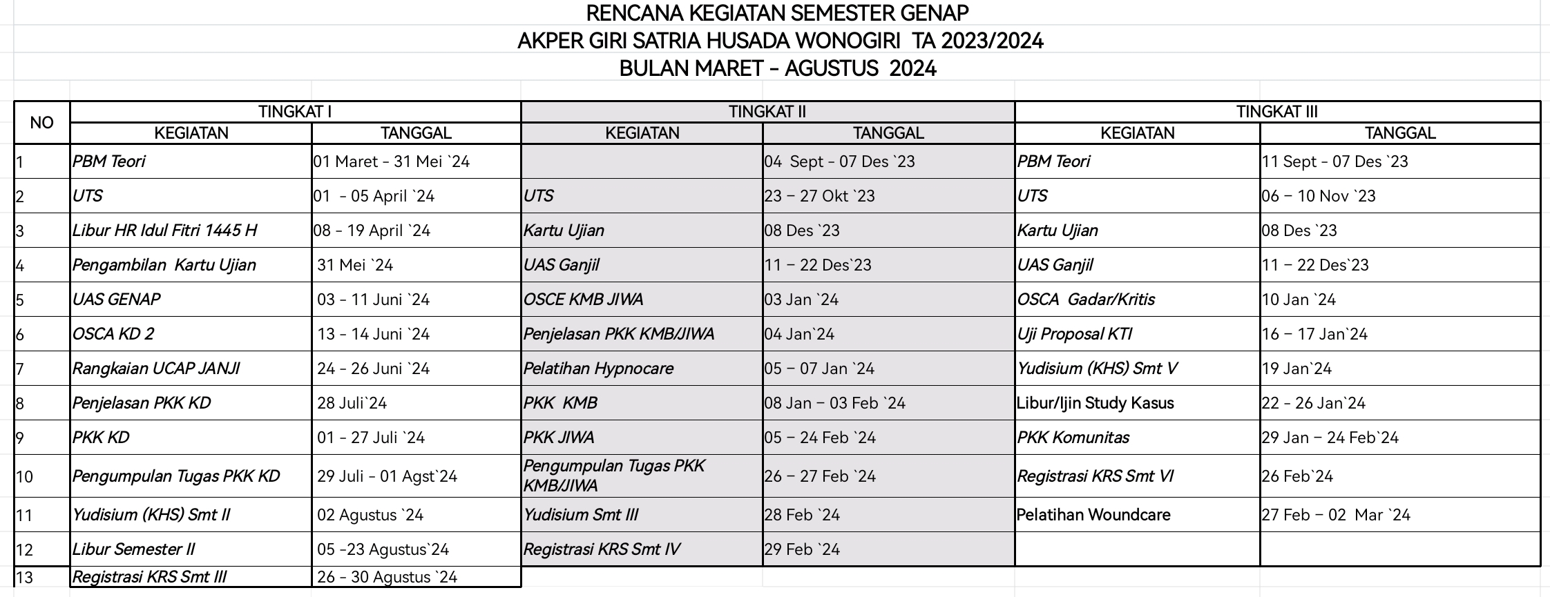 Sebagai sarana untuk saling berbagi kebahagiaan dan wujud silahturrahim antar seluruh Civitas Akademik, Akademi Keperawatan Giri Satria Husada Wonogiri menyelenggarakan